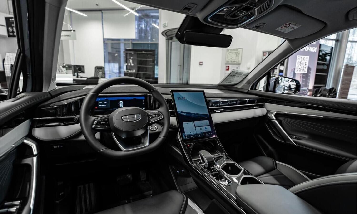 • Отделка интерьера и сидений тёмно-серой экокожей со светлыми вставками